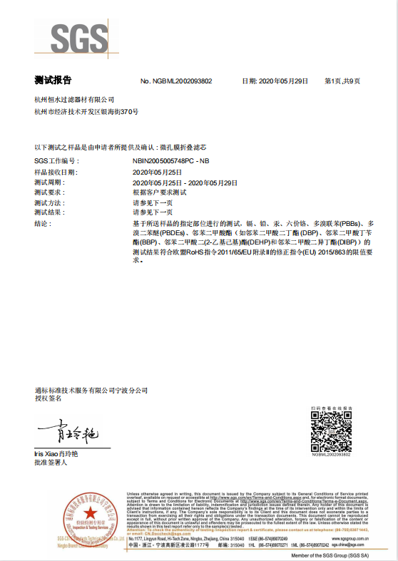 為保障消費者健康與權益,我司就產品中涉及的特定物質控制事宜,本公司生產的所有過濾器以及濾芯,在生產及質量控制過程中,嚴格遵循國家及國際相關法規與標準,對物質實施嚴格管控。