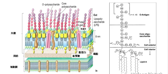 內毒素是革蘭氏陰性細菌細胞壁的一種脂多糖成分,是一種常見的病原體,細菌在生長、分裂或死亡過程中都會向環境中釋放內毒素。內毒素是兩親性分子,由親水性多糖部分和共價結合的疏水性脂質成分(稱為脂質A)組成;多糖部分可分為兩個結構域, 核心多糖和O特異性抗原多糖,脂質A成分已被確定為內毒素活性的LPS 成分。內毒素的結構如下圖: