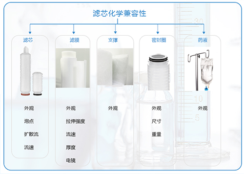 在不同操作條件及工藝流程下,有可能對所使用的濾膜或過濾器有不同程度的影響,通過測定濾膜或過濾器的物理化學(xué)穩(wěn)定性,如泡點(diǎn),膜厚度,流速等參數(shù)變化,以準(zhǔn)確評估濾膜或過濾器對特定工藝流體的相容性。
